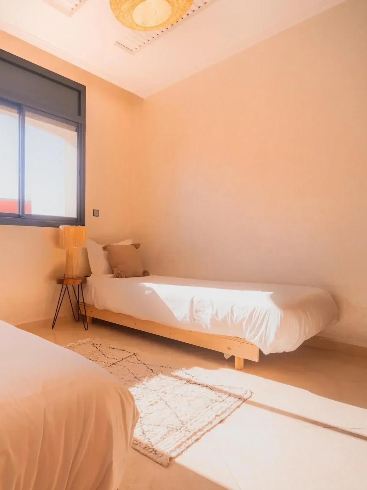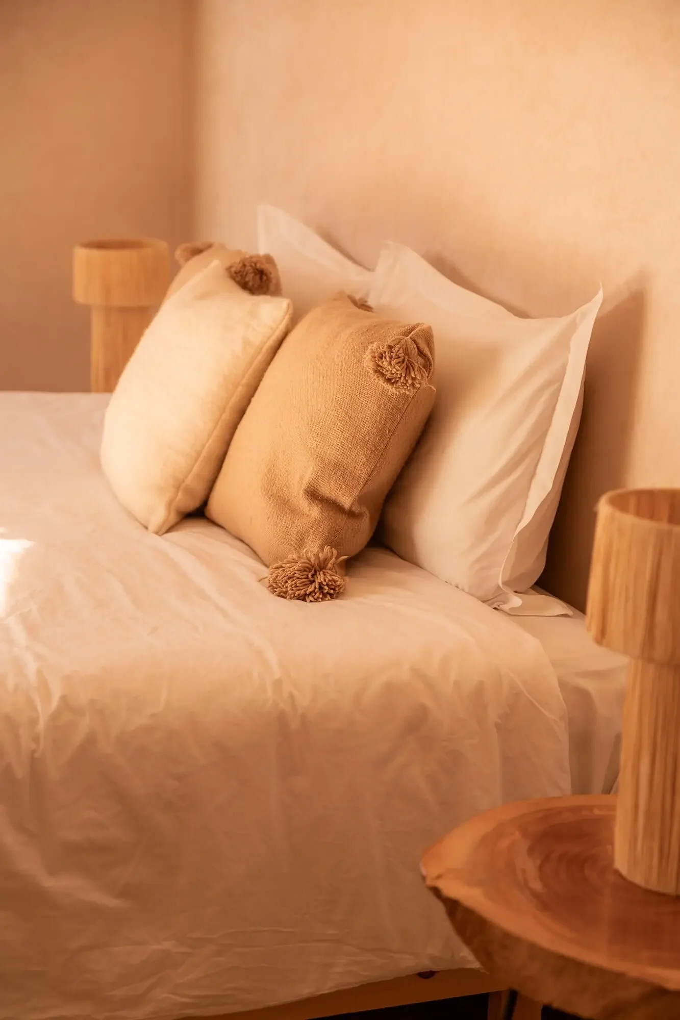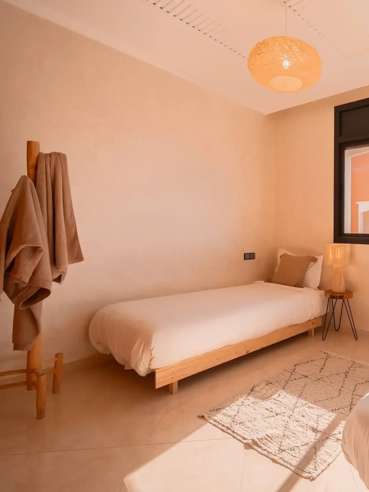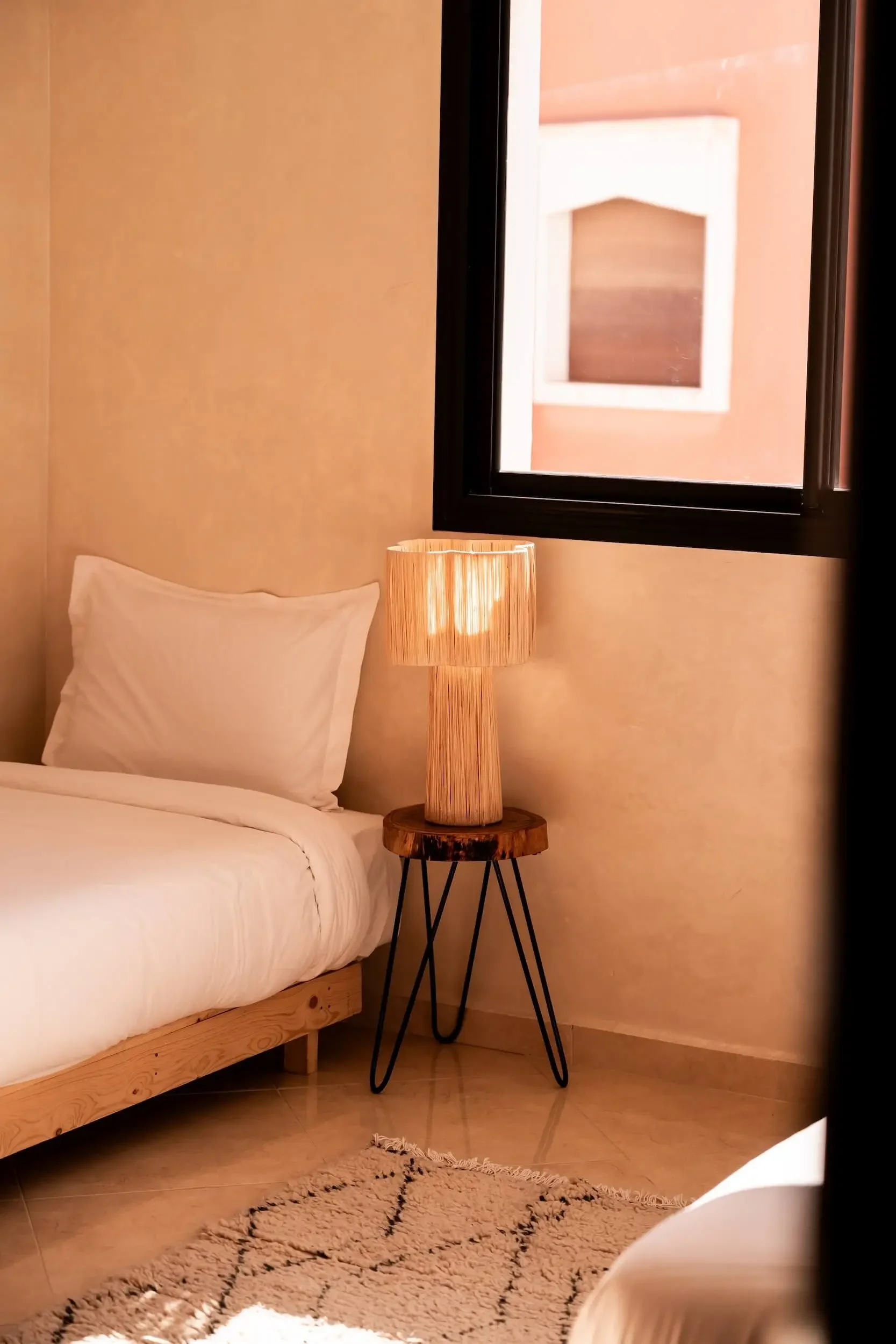 In the heart of Imsouane, take refuge and recover in simple comfort: natural light, soft cotton sheets, woven wool, and handmade Moroccan décor. A space that feels both grounding and deeply restful after ocean-filled days.
