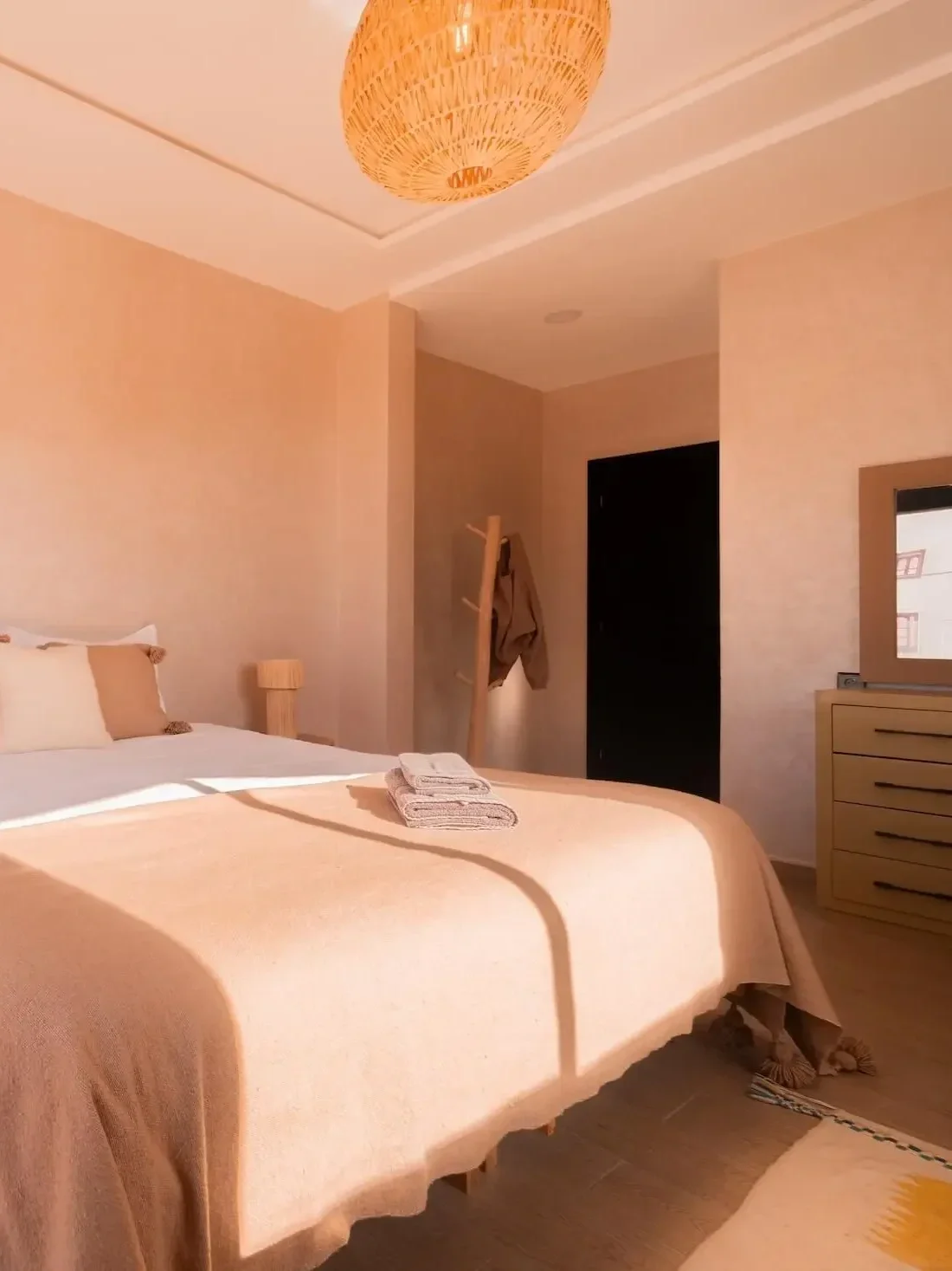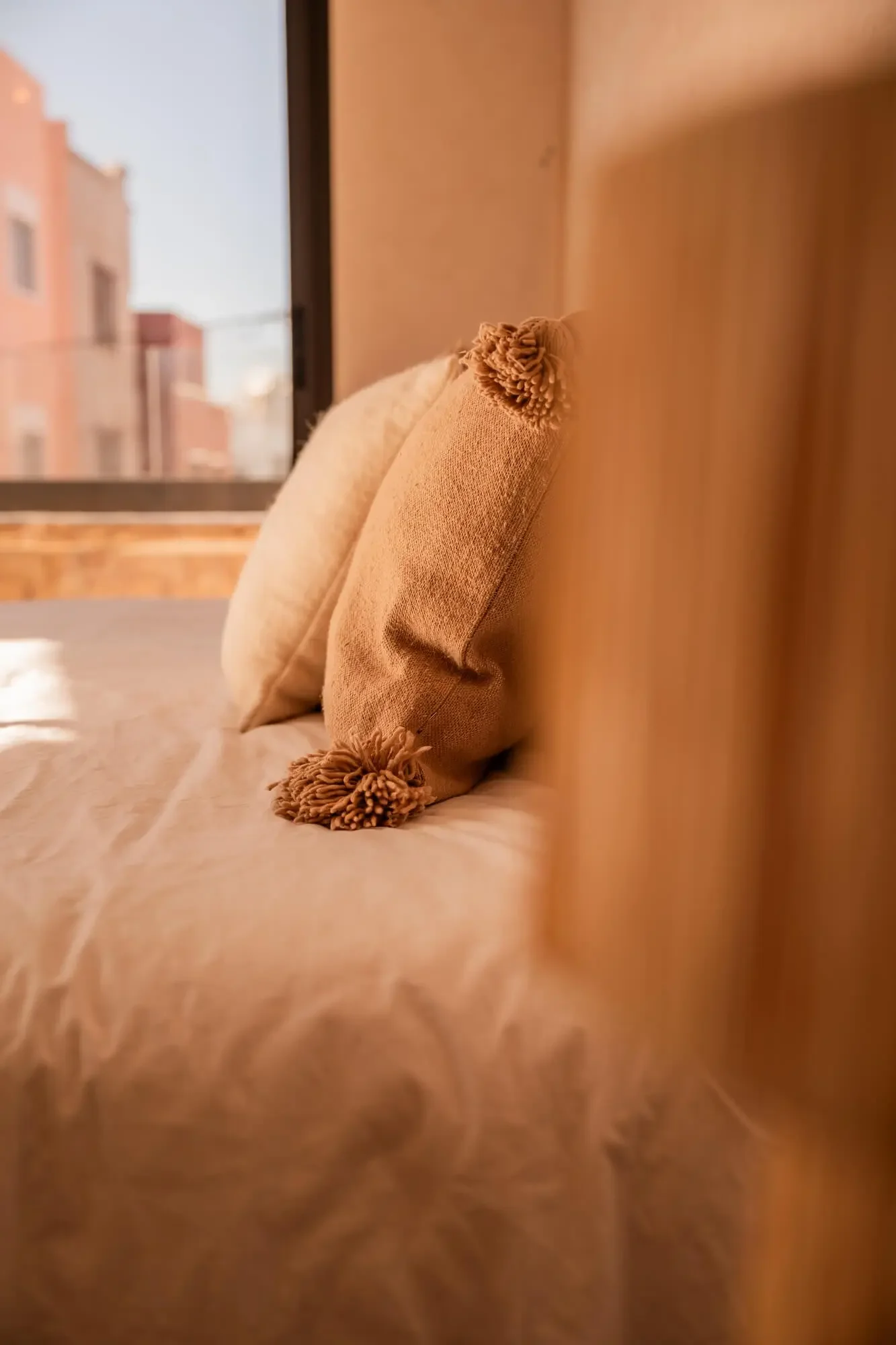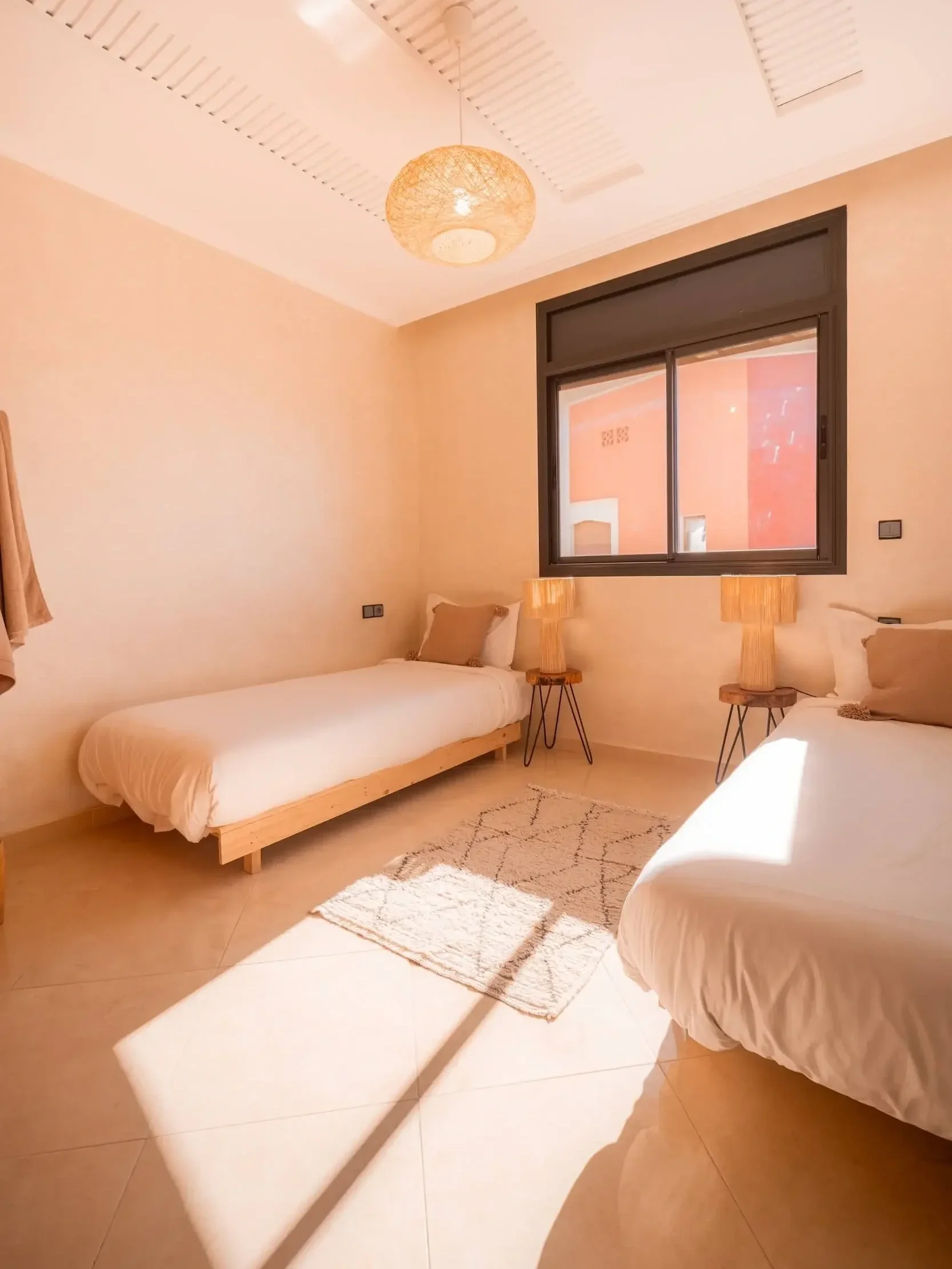 In the heart of Imsouane, take refuge and recover in simple comfort: natural light, soft cotton sheets, woven wool, and handmade Moroccan décor. A space that feels both grounding and deeply restful after ocean-filled days.