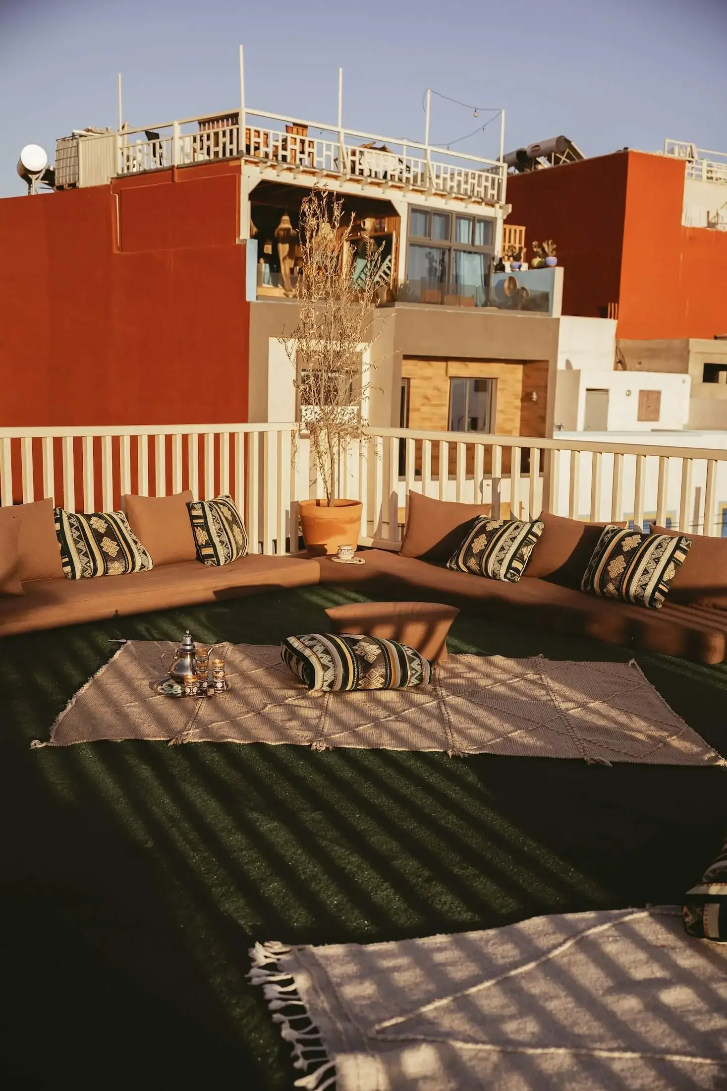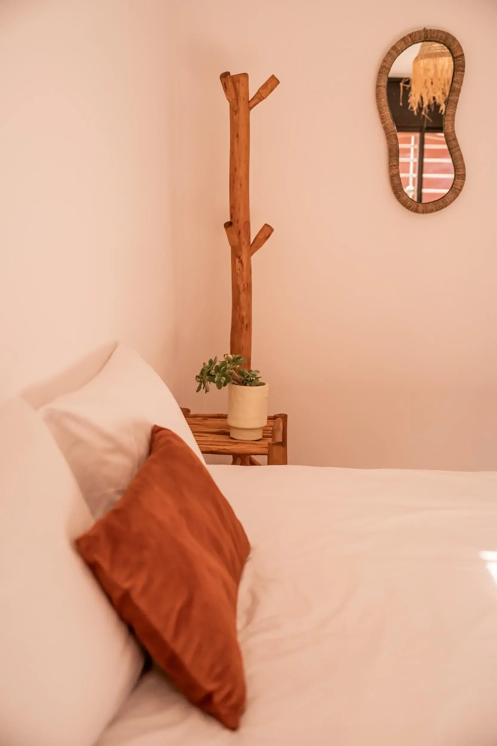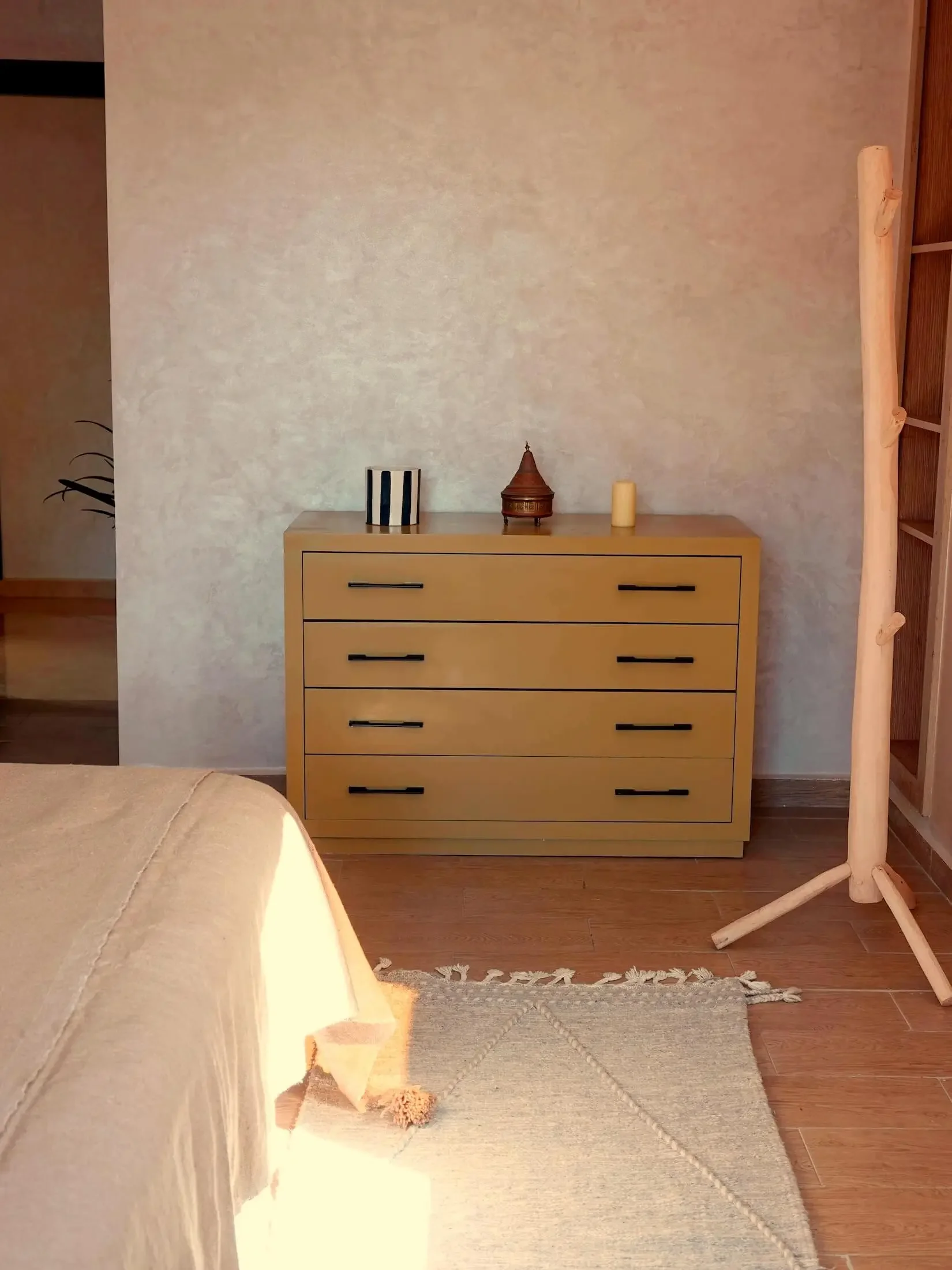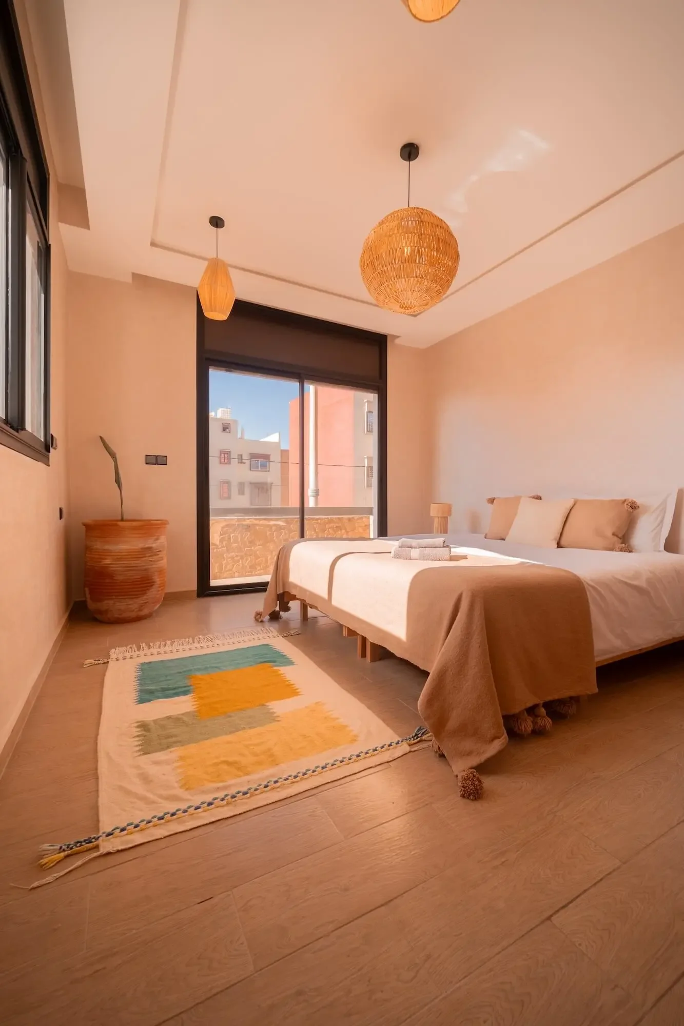 In the heart of Imsouane, take refuge and recover in simple comfort: natural light, soft cotton sheets, woven wool, and handmade Moroccan décor. A space that feels both grounding and deeply restful after ocean-filled days.